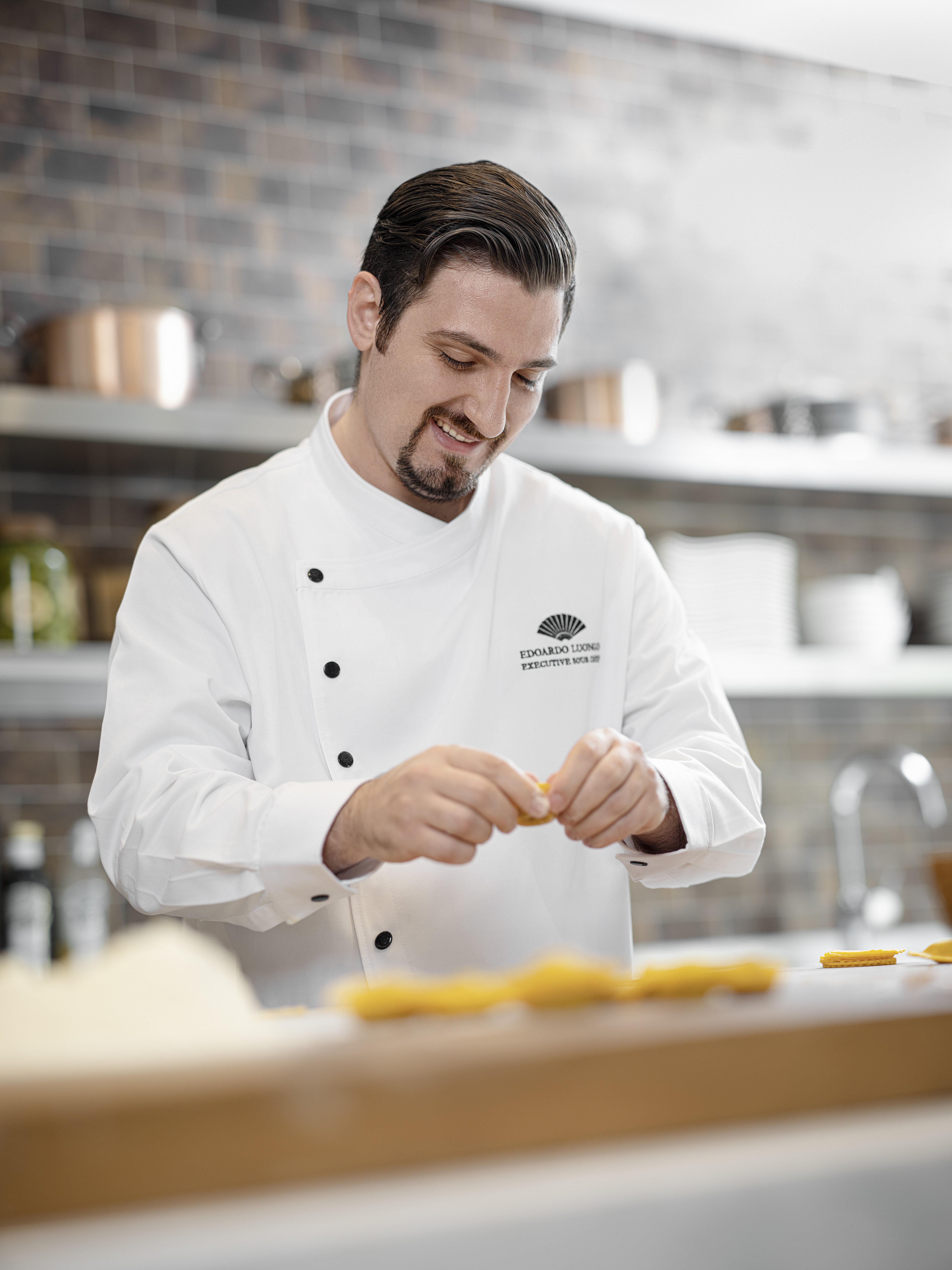 北京前门文华东方酒店 VICINI 携手深圳文华东方酒店 TAPAS 77,呈献一场融合意式匠心与西班牙热情的限时美食盛宴。坐落于胡同深处的 VICINI,在意大利语中意为 “邻居” ,氛围温馨又不失活力,提供暖心意大利美食。由来自意大利罗马的主厨 Edoardo Luongo 掌舵,他以现代手法诠释意大利多地风味,采用优质的时令食材,烹制正宗的意大利菜肴,将传统的灵魂与创意的细节完美融合。从小火慢煮的小牛肉里脊搭配金枪鱼、刺山柑与手作蛋黄酱交织成层次丰富的意式金枪鱼酱小牛肉片,到以意式香草腌制并炙烧的黄鰤鱼,再到以浓郁海鲜汤汁包裹的帝王蟹贝壳面,每一道菜都体现出他对食材纯粹本味与味觉平衡的追求。