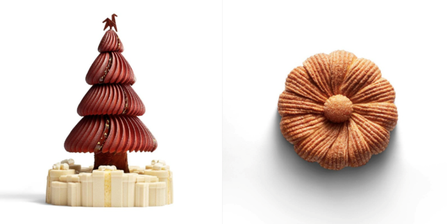为庆祝节日季的到来,巴黎白马庄园(Cheval Blanc Paris)甜点主厨Maxime Frédéric及其团队倾心推出两款精致作品:旋转圣诞树造型的树桩蛋糕与雏菊造型的国王饼。