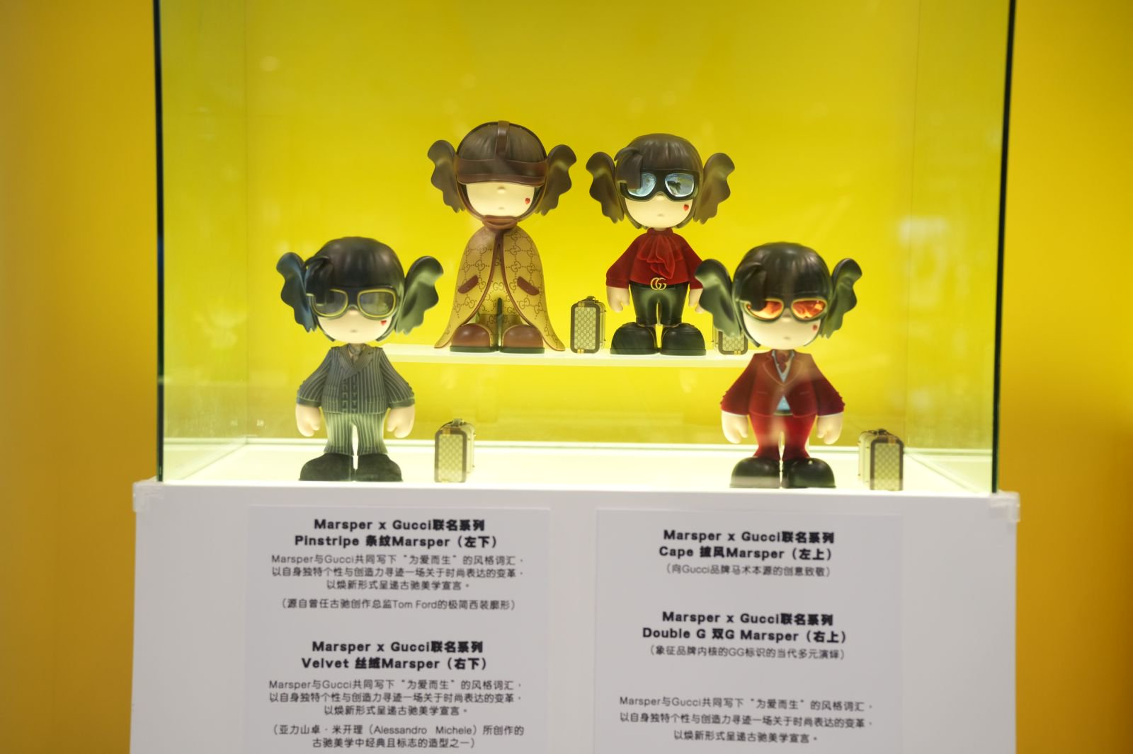 Marsper静坐在简约白王座上,头顶三个圆圈交叠交织成图腾,顶端点缀星瓣,星辉与花瓣在光中交融。光影、图腾与Marsper交汇,仿佛沉入爱与魔法交织的梦境,成为这场潮流之旅的见证者。这里陈列着多款经典Marsper展品,涵盖品牌联名款、大师款、限定款等多个系列。