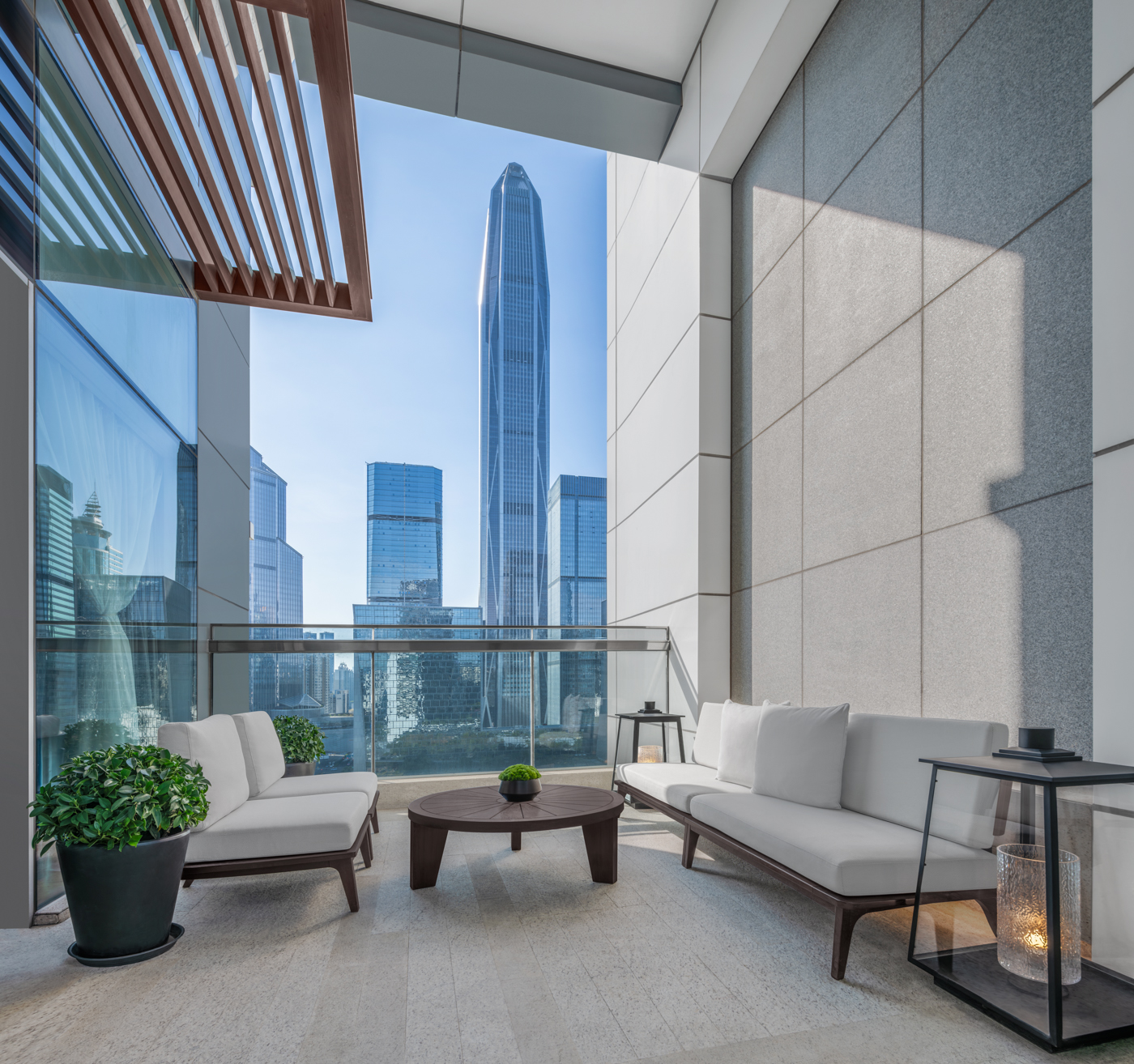深圳星河丽思卡尔顿酒店坐落于福田区中央商务区的核心地段,近俯城市中心繁华景色,以及四季常绿的莲花山公园。焕新客房的设计由国际知名设计事务所CCD(香港郑中设计事务所)操刀,设计灵感源自于沿海城市深圳作为智慧城市的概念与福田中心的绿意盎然结合。将山脊海岸线,母贝及水纹与客房设计设施相融合,呈现城市生活新绿洲,酒店不仅融合了深圳作为创新之都的智慧元素,更保留了自然与宁静的和谐共生。