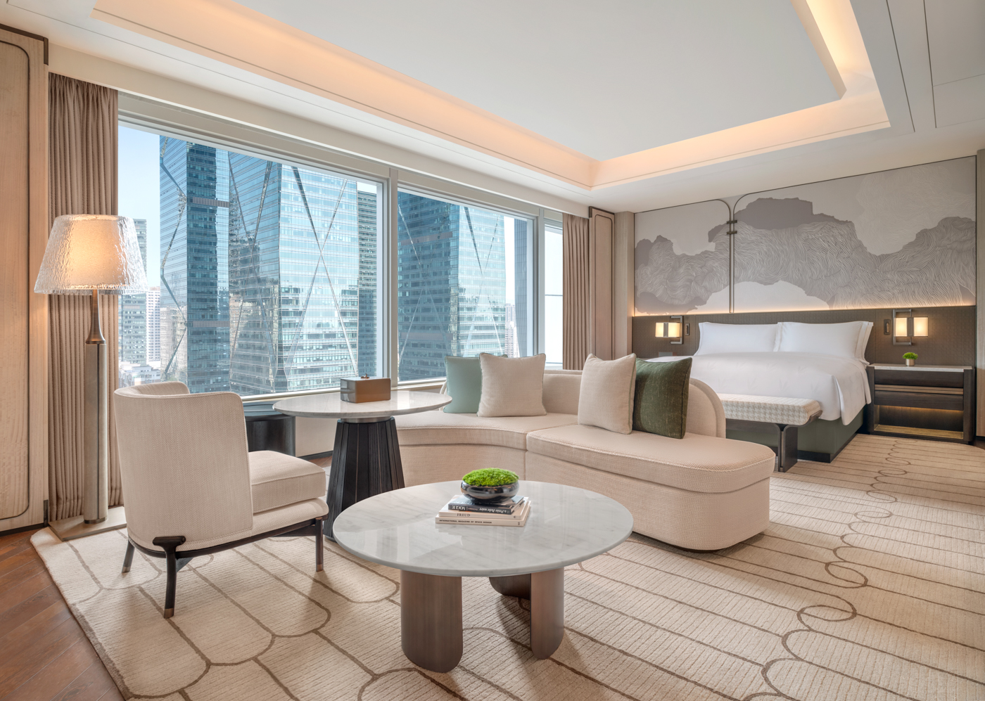 每间客房面积均在50平方米及以上,宽敞奢华的浴室选用大面积大理石装饰,可自由调酒的餐边柜设计风格迷你吧台,步入式淋浴设施以及 Diptyque洗漱用品。客房内设施均采用了前沿产品,包括戴森吹风筒、 Geneva蓝牙扬声器、 Narumi瓷器、TOTO智能马桶等,给宾客带来更加智能化、个性化的居住体验,酒店房间均坐拥令人惊叹的摩登都市景观,从林立的摩天大楼到莲花山公园的葱郁植被,焕新后客房涵盖雅致客房、 雅致园景客房、雅致尊尚客房、都市探索套房以及空中露台套房等多种房型,以满足不同入住需求。