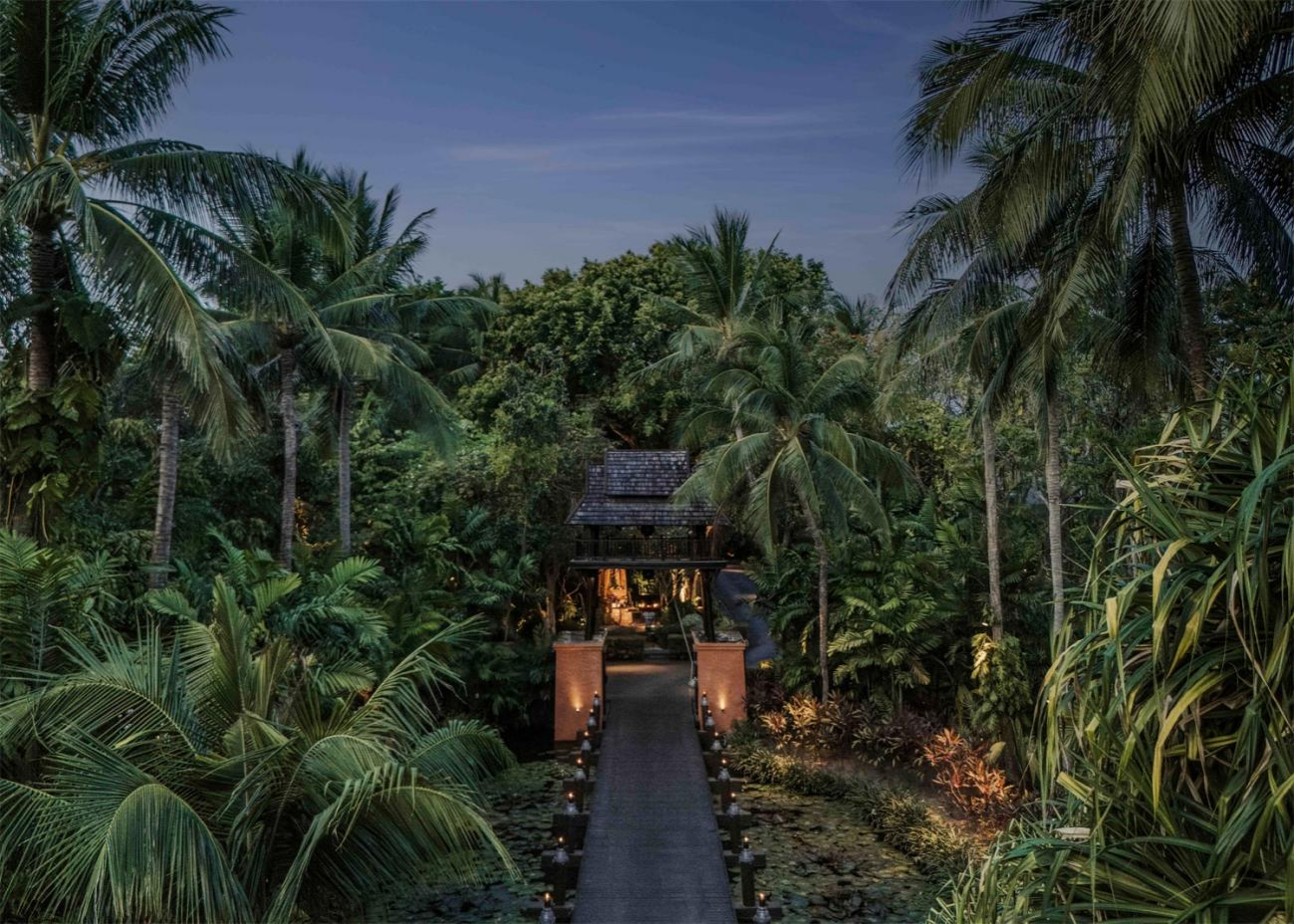 酒店所在位置曾是一片繁茂的椰子种植园。在此基础上,建筑大师比尔·本斯利(Bill Bensley)为其操刀设计了美轮美奂的园林景观,包括中央莲池和水疗花园。酒店建筑风格向泰国南部传统致敬,与之相得益彰的则是纯正殷切的泰式待客之道。