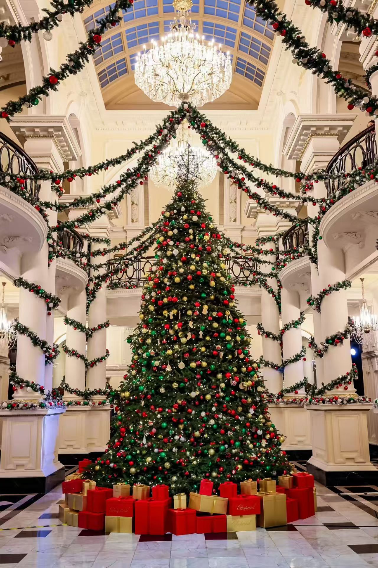 在宾客的共同见证下,高耸的圣诞树由外滩华尔道夫与Chopard香水联名点亮。瞬间,晶莹闪烁的彩饰与璀璨耀眼的灯光交织成一片温暖星海,将百年历史空间装点得宛如童话之境。伴随着欢快的节日旋律,憨态可掬的圣诞老人惊喜现身,与宾客亲切互动,传递浓浓祝福;身形修长的高跷步行者穿梭于人群之间,以优雅姿态派发节日惊喜;活力四射的摇摆舞表演者用轻盈的舞步旋起复古裙摆,将欢愉的氛围注入每一寸空气;而一旁的爵士演奏乐队则奏响慵懒迷人的乐章,让整个夜晚沉浸于丝绒般的音律之中。