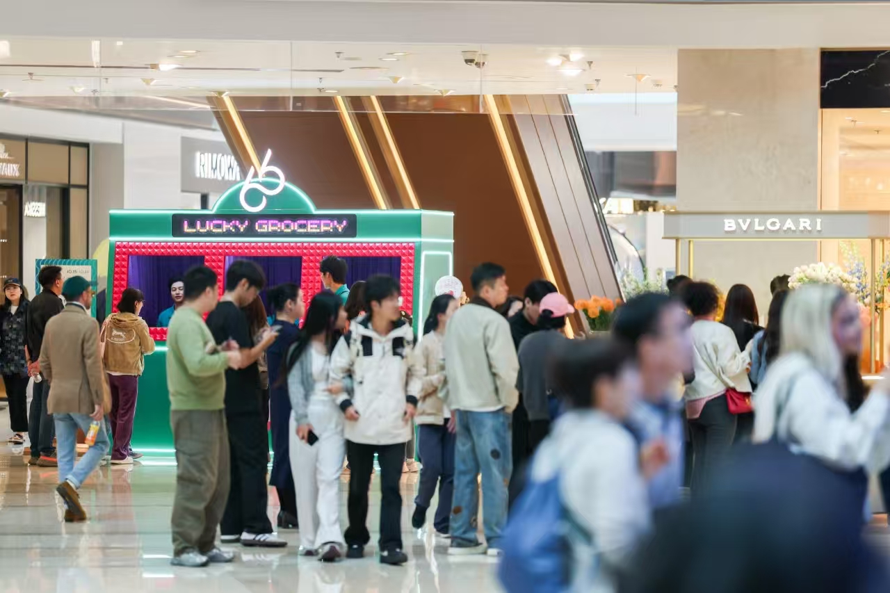 在商场的各楼层间,精心设置了6处打卡点和互动游戏供宾客探索。“好运爆发许愿池”色彩缤纷的挂件和幸运签给宾客们带来了趣味互动和好运洗礼,“抓抓萌力打卡池”则上演一幕幕趣味大片,“幸运由你水果机”以爱尔兰传统小游戏人工水果机为原型,考验顾客的默契互动,“元气能量翻翻乐”在缤纷色彩中比拼眼力和运气,“律动共振弹球乐”巨型多巴胺弹珠游戏,享受全场为赢家欢呼摇铃的时刻。活动现场,顾客们流连于各互动点不断收获能量和惊喜,涌动蓬勃的活力氛围。