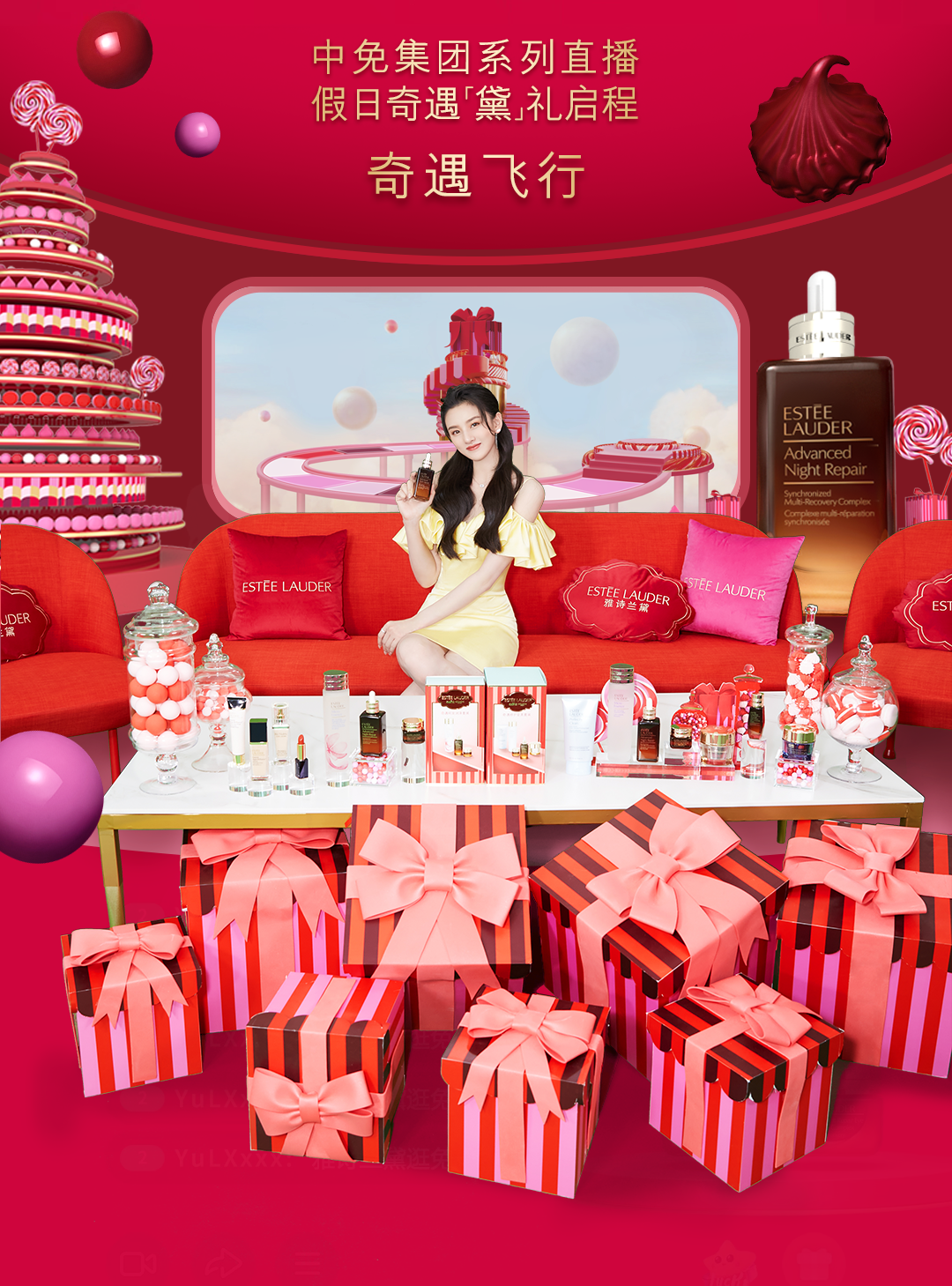 雅诗兰黛携手中免集团于11月27日举办首场三地联播直播活动,雅诗兰黛亚太区护肤及彩妆大使宋祖儿受邀出席,由此开启中免集团系列直播的奇遇旅程。雅诗兰黛更将节日氛围延续至海南各地,cdf海口日月广场免税店以及多家酒店合作伙伴在12月年末礼物季均以雅诗兰黛主题的奇遇圣诞树装饰呈现。此次盛况空前的灯光秀表演为雅诗兰黛海南首秀,并见证雅诗兰黛亚太区旅游零售与雅诗兰黛全球代言人杨幂的第四年愉快合作。