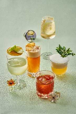 酒店的瑞吉酒吧同步呈献6款联名限定鸡尾酒与无酒精特调,灵感源自Marc Jacobs fragrance大胆明媚的花漾格调。Daisy Crush 将油洗黄瓜柑橘金酒与爽口汤力水融合,展现轻盈明快的节日气息;Golden Glow 以苏格兰威士忌搭配慢煮树莓,带来温暖馥郁的尾韵。