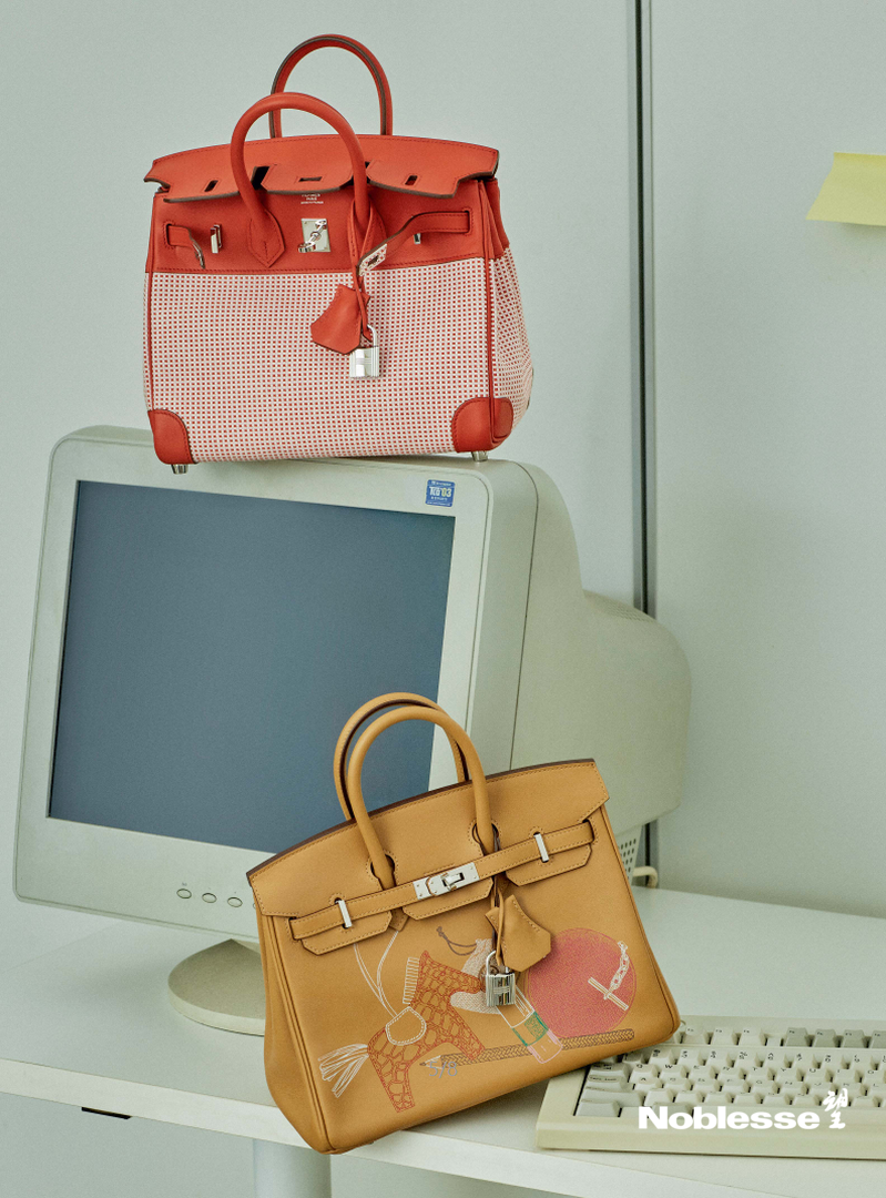 由上至下:Quadrille Canvas帆布配Swift小牛皮Birkin 25手袋、Swift小牛皮Birkin 25 手袋(all from Hermès)