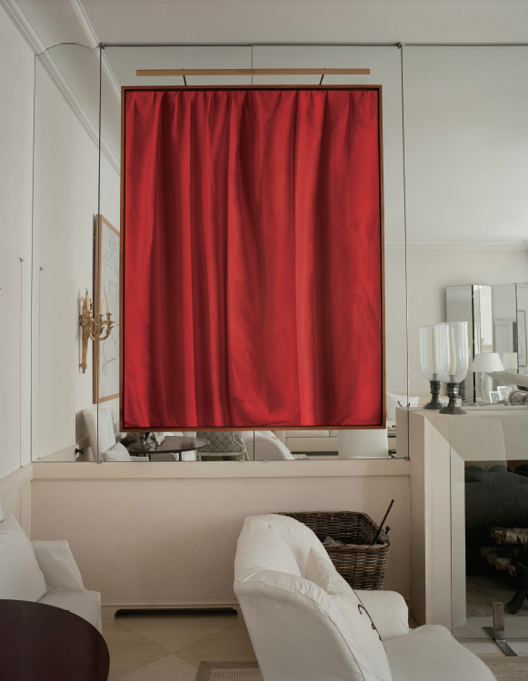 古典家具和现代主义时期的艺术作品如何和谐地共处一室?这考验的是纪梵希在混搭方面的独到品位。在Rue de Grenelle大宅的第一间客厅内,悬挂着巴布罗·毕加索(Pablo Picasso)于1947年创作的大型黑色粉笔纸本素描《拿着长矛的农牧神》。在这幅画作下方是由Maison Meilleur制作的督政府时期风格的桌几,旁边摆放着精美的路易十五时期的“à la Reine”扶手椅,椅子的三色皮革和麂皮镶边由纪梵希品牌的手套工匠制作。毕加索这件作品的灵感源于罗马神话,笔触则是他素描作品的经典线条,本身便是古典题材与现代艺术思想的一次交融,所以该作品在古典风格家具的环绕下毫无突兀之感。
