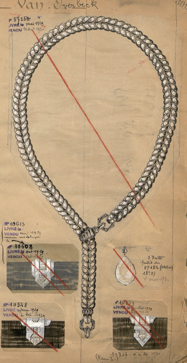 卡地亚胸针设计稿,1925年,卡地亚巴黎,于1925年巴黎现代工业和装饰艺术博览会展出Archives Cartier Paris © Cartier