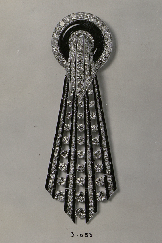 第一次世界大战打碎了人们的美梦,也将更多的科学技术、当代工业、使用方式带到了珠宝业,人们亟需和战前有明显区别的表现形式来展示时代的更迭。用大面积的平面来取代立体,用规则的抽象线条替换复杂的具象造型,用清晰的黑白对比驱散色彩堆砌的迷茫,用鲜明的界线划出理想的框架—“装饰艺术”(Art Déco)应运而生。