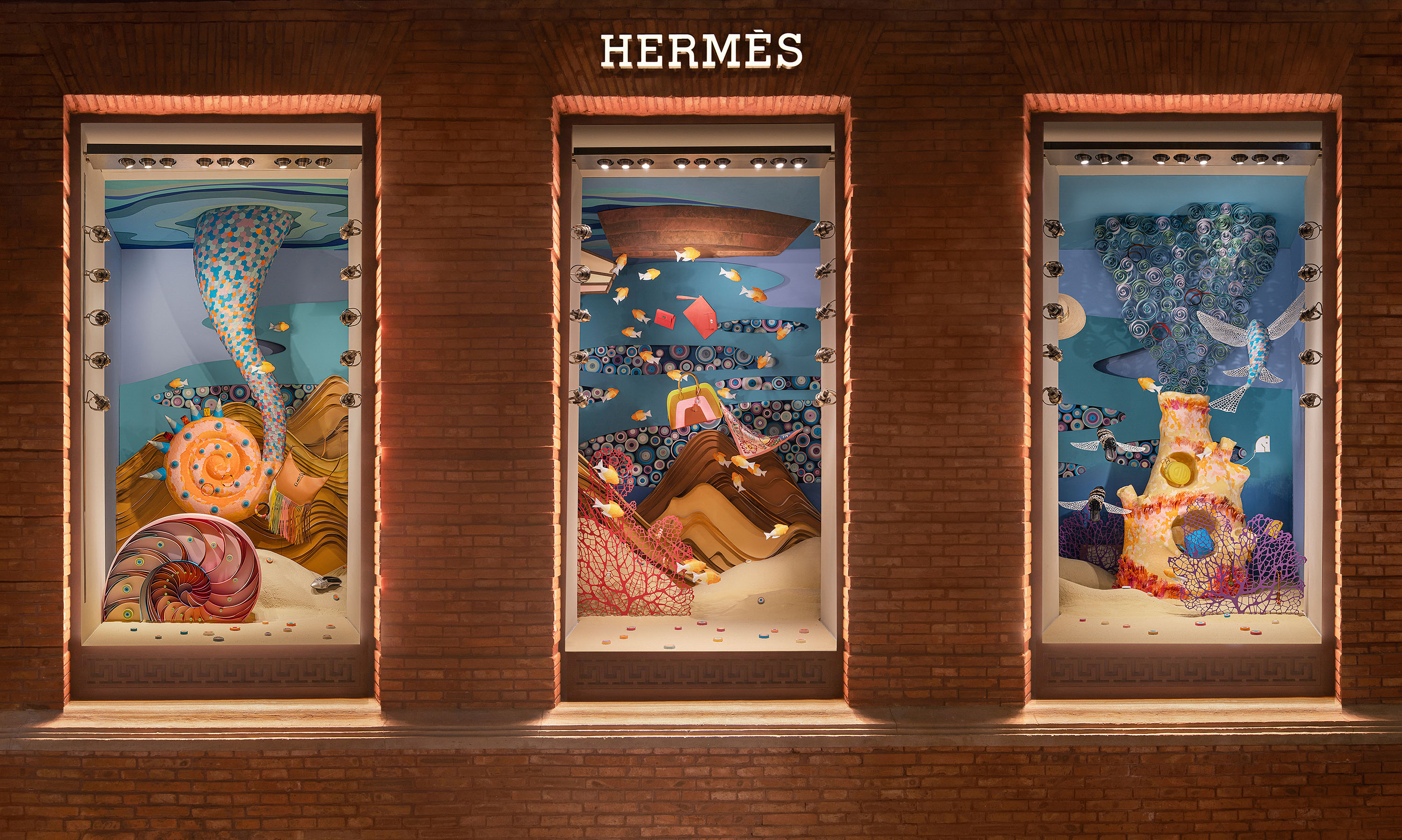 本季全新春季橱窗中,艺术家 Yulia Brodskaya 女士以纸为媒介,以海洋为视角,透过蔚蓝大海藏匿的无数秘密,诠释人类对浩瀚宇宙无限未知的不懈探索。