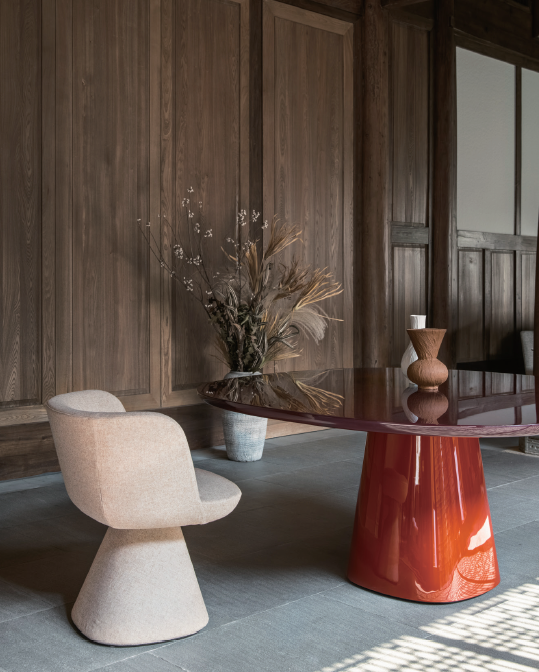 传说法国女人在黑色中找到安全感,却在红色中找到自信,大抵是因为红色在西方文化中与血液的联想,能够瞬间点燃身体里埋藏的热情。巴黎久负盛名的室内设计师Pierre Yovanovitch在2021年发布了自己的同名家具线Pierre Yovanovitch Mobilier,45件新品整体自然流动、低调优雅。其中的Poppy边桌便是巴黎红的代言,这张咖啡桌用低饱和度的红色制作搪瓷饰面,熔岩感的基座呈现自然有机的形态。