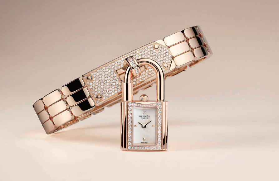 创作于1975年的爱马仕Kelly腕表在2022年推出全新表款,并突出梦幻风格。新款腕表在佩戴上提供了多种可能,不仅可与金质或精钢表带结合佩戴于腕间或手臂,还可以皮绳为链,以Box小牛皮或短吻鳄鱼皮为保护套,化身为装饰颈间的长项链。无论佩戴者选择以上何种佩戴方式,其以珍珠母贝打造的表盘所特有的隽秀素雅皆令整体看上去优雅大方、格调非凡,表壳镶嵌钻石的款式更是有着精致的华贵感。