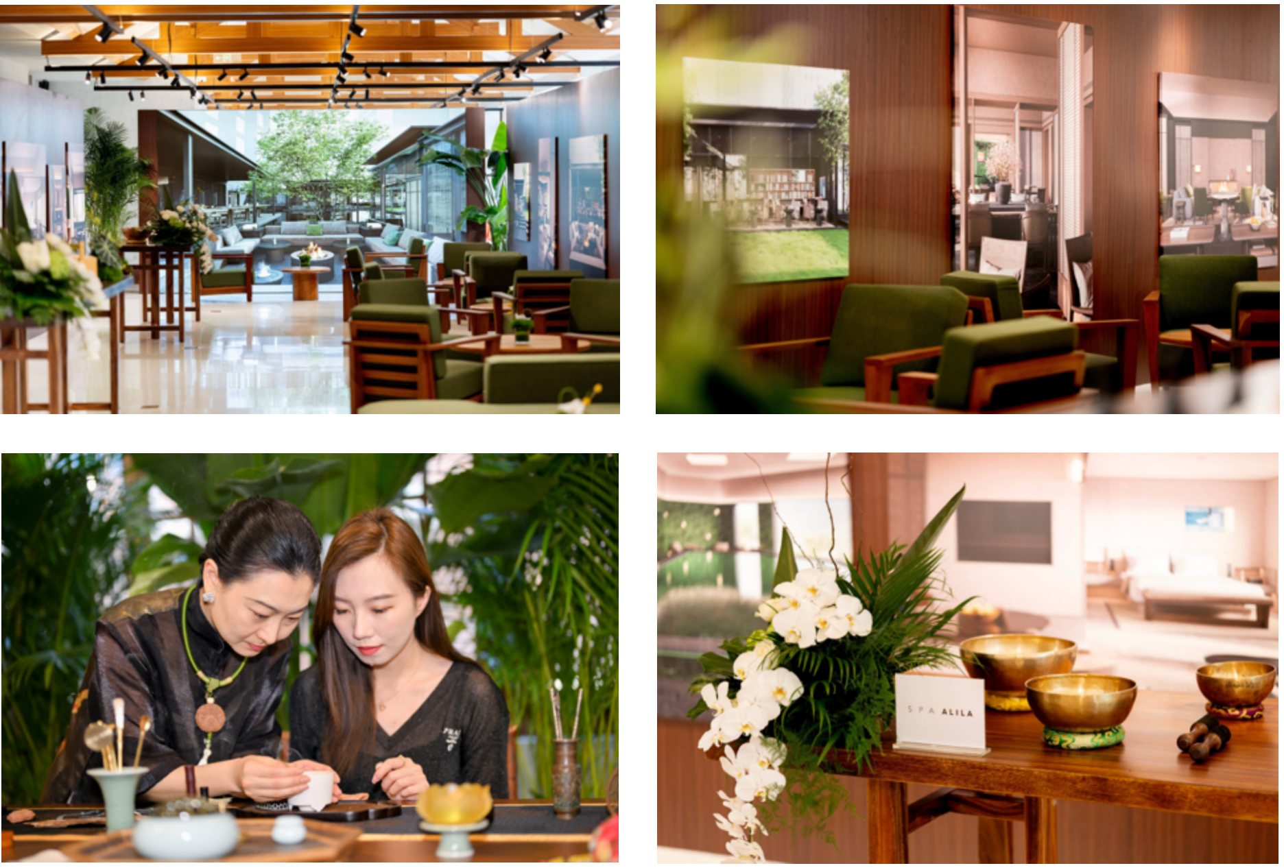 现场二层VIP体验区,一片沉浸式谧境便映入眼帘,宾客可在此享受放松交谈的舒适环境。这里展示了酒店效果图与特色阿丽拉水疗中心,揭开了阿丽拉上海神秘面纱的一角。阿丽拉水疗中心以柔和色调与自然材质,营造充满生机与宁静的空间,水流景观与繁茂绿植相得益彰。空气中氤氲的香薰精油,伴随潺潺流水与悠扬鸟鸣,带领宾客进入身心和谐的自然之境。