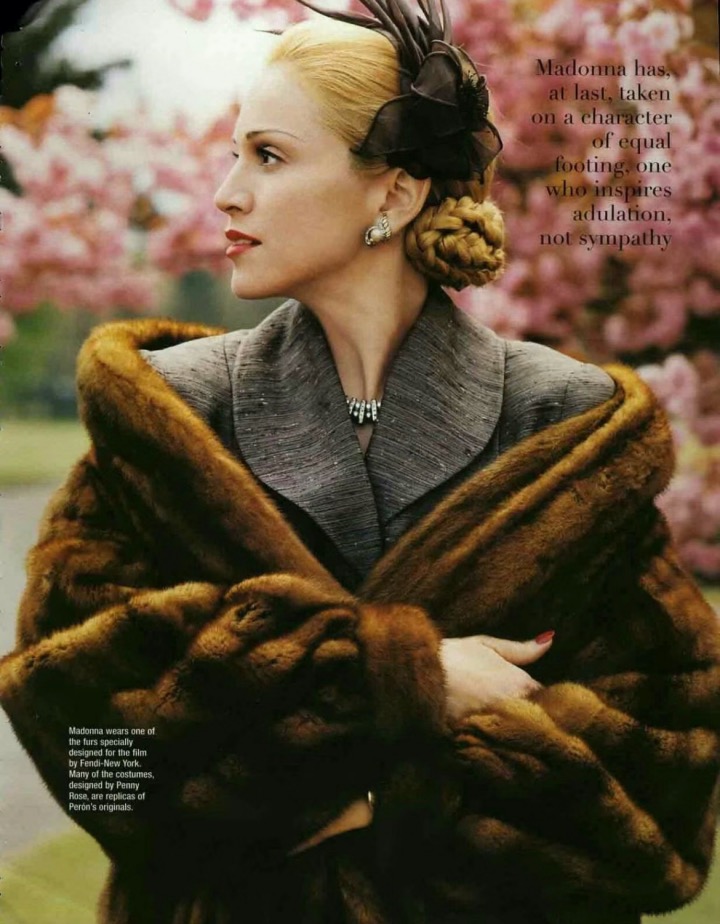 皮草的魅力历史悠久,常常出现在各大影视剧中。由于自身简约飒爽的属性,为穿着者增添魅力,棕褐色的皮草大衣更是被称为经典且永恒的存在,任何时候都不过时。电影《贝隆夫人》中,由麦当娜饰演的女主角阿根廷国母贝隆夫人就身穿Fendi皮草,凸显气场和韵味。