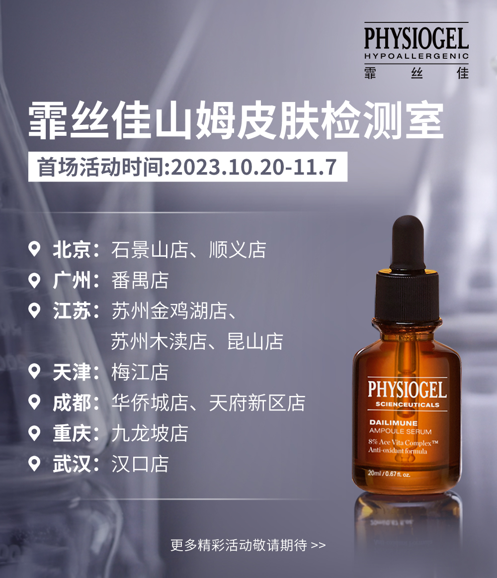 霏丝佳携全新修颜赋能精华液首发亮相山姆会员商店限时路演现场,为敏感肌人群带来温和抗氧修护体验,现场互动打卡即可领取修颜赋能精华液三日体验装,与霏丝佳一同唤醒肌肤光采。消费者还可现场参与专业肌肤测试,根据不同肤质与肌肤困扰挑选自己的专属修护星品。此次进驻山姆,霏丝佳携A.I.舒缓修红安肤面霜、乳液、面膜,及DMT舒润保湿柔肤精华液、身体乳等多款王牌产品惊喜上线,为消费者提供多样化贴心选择,邀请更多敏肌人群感受王牌拟肤科技(PHYSIOGEL BIOMIMIC TECHNOLOGY®)带来的肌肤新生力量。