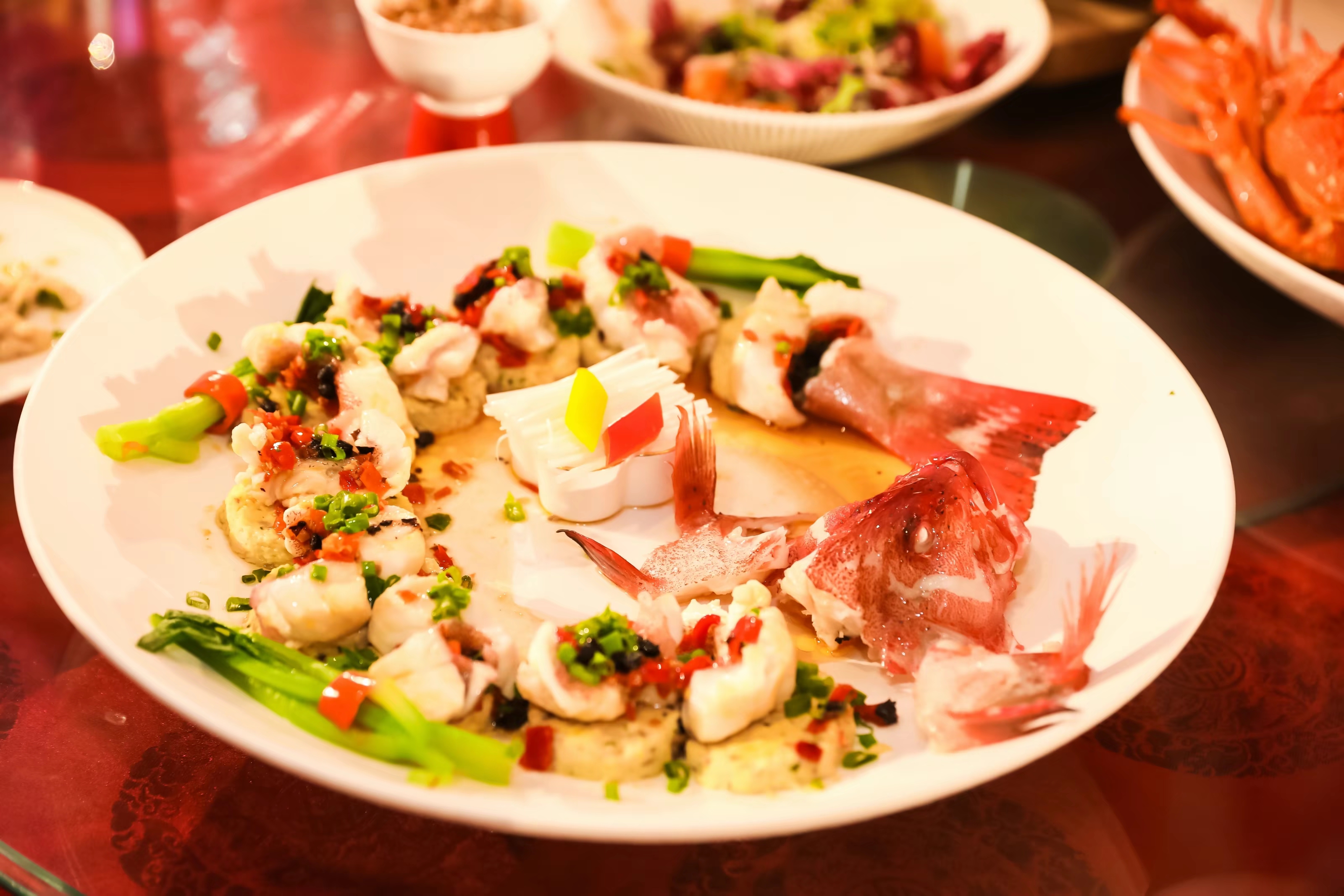 自制黄辣酱盘龙东星斑:软嫩鲜美的东星斑,品质相当出众;辣而不呛的自制黄椒酱色泽金黄,看着就勾人食欲。与东星斑同蒸,鱼肉的鲜甜在馥郁的黄椒酱中荡漾开来,更具赏味的丰富口感。香宫用这道菜祝福到店的每一位宾客像盘龙东星斑一样年年有余、红红火火。