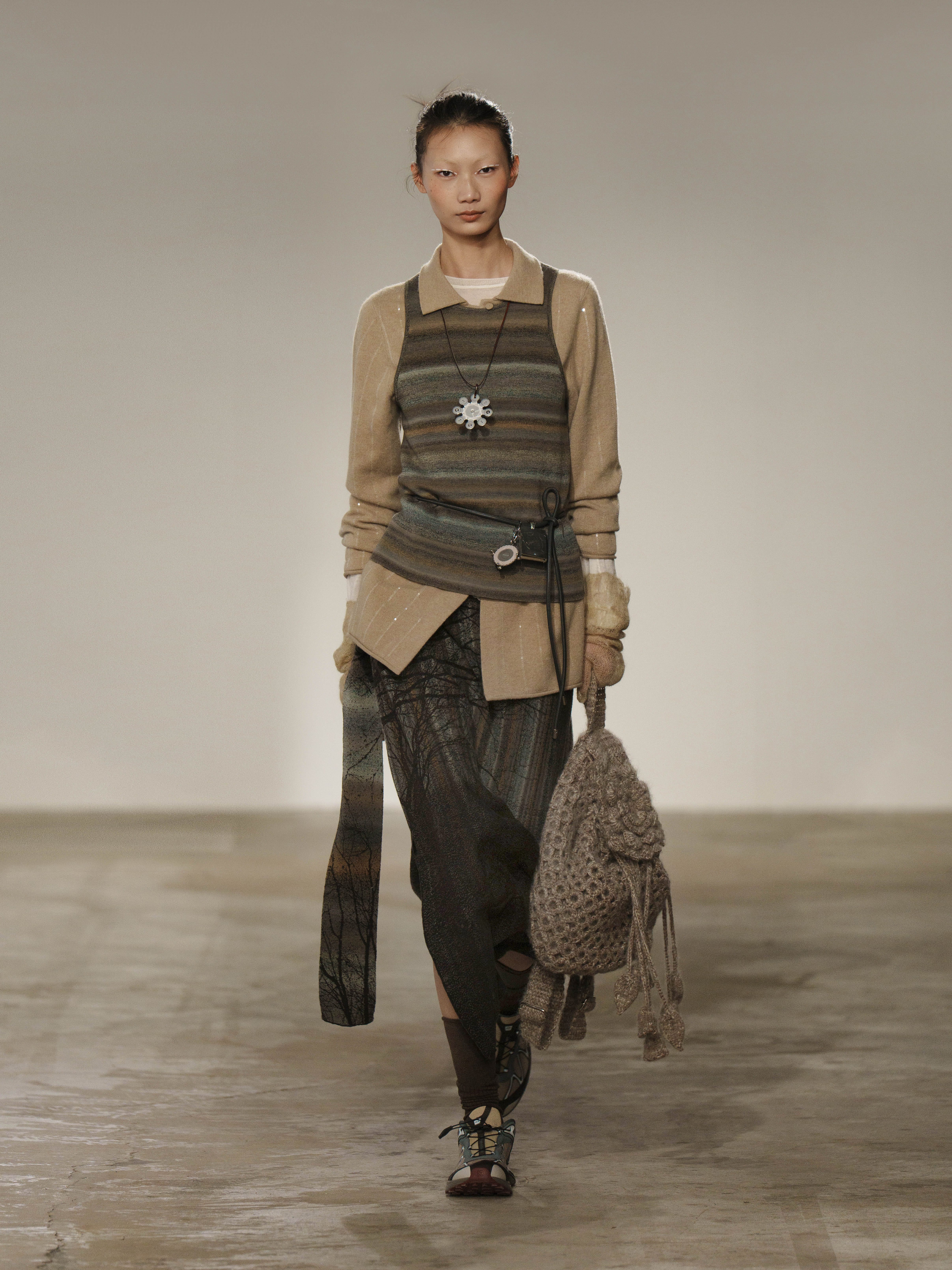 回到当代语境之下,对于这样一个小小的,温暖的群体的想象,也恰好满足了回到更简单的人际关系和自然当中去的渴望。重新拾起那些可爱的编织工具,在一针一线中汲取自然和温暖的能量,正是Swaying这一季初衷。这一封充满温柔与女性力量的信笺,此时此刻正要寄出。