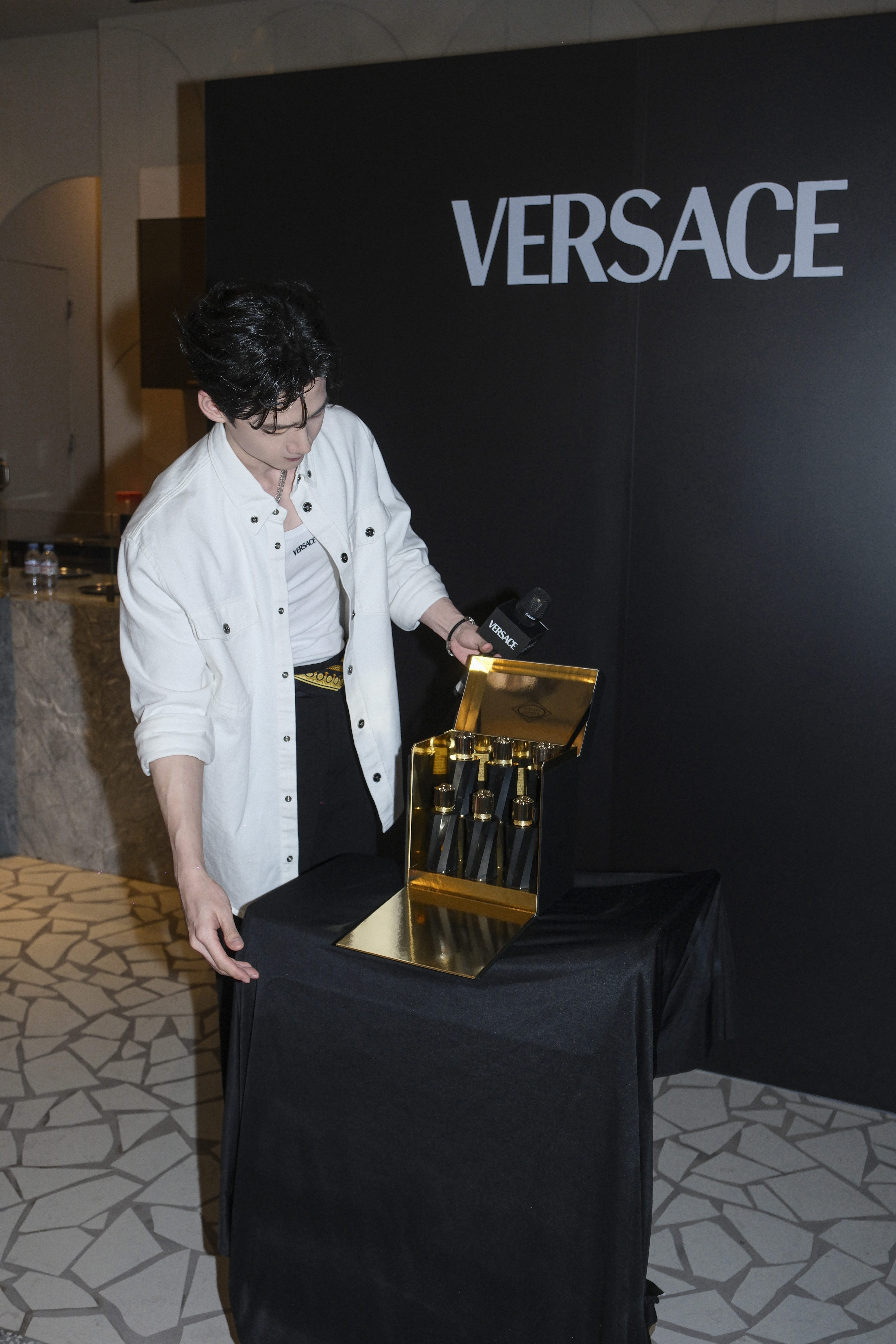 活动现场,白敬亭还与在场嘉宾以名为“香气与感觉”的小游戏进行互动,带领大家探索全新Atelier Versace范思哲臻华高定系列香水单品,其包括十二款香水,香调家族横跨清新调、花香调、木质调、辛辣调以及琥珀调。此次活动中,白敬亭更与嘉宾代表们为大家揭开限量50套的Atelier Versace范思哲限量臻华高定鎏金礼盒的神秘面纱,礼盒中的每款单品皆是精品,无不值得细细品鉴。